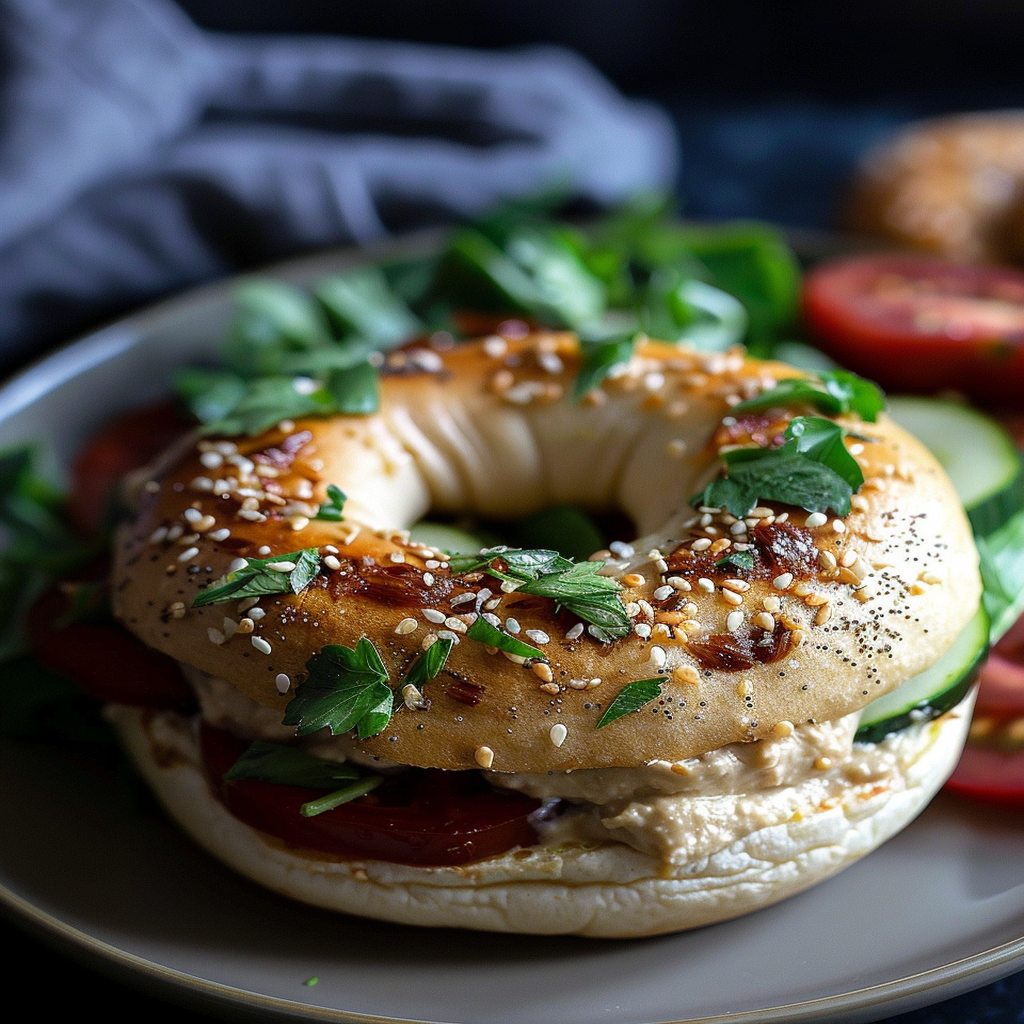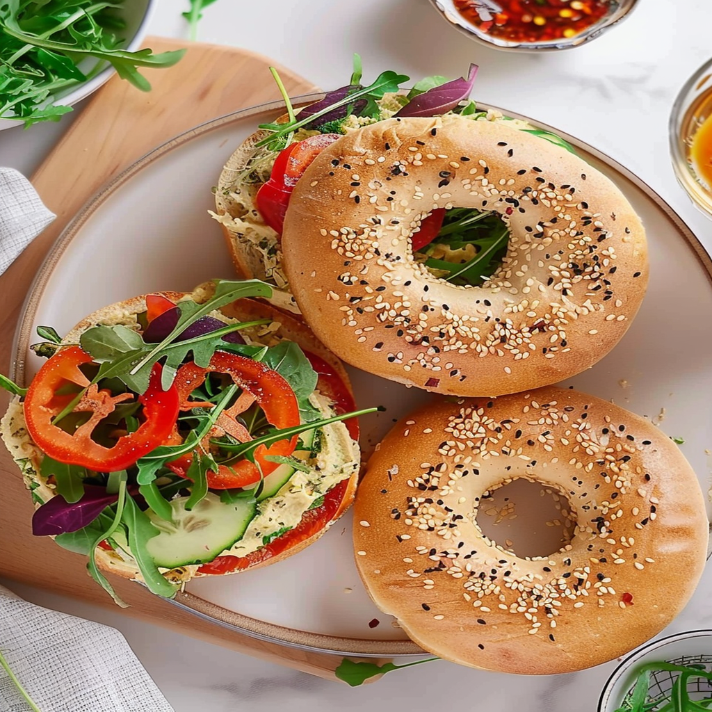 Hereโs a delightful recipe for a Bagel with Hummus Roasted Red Pepper Spread Arugula that will make your taste buds dance and your stomach sing!