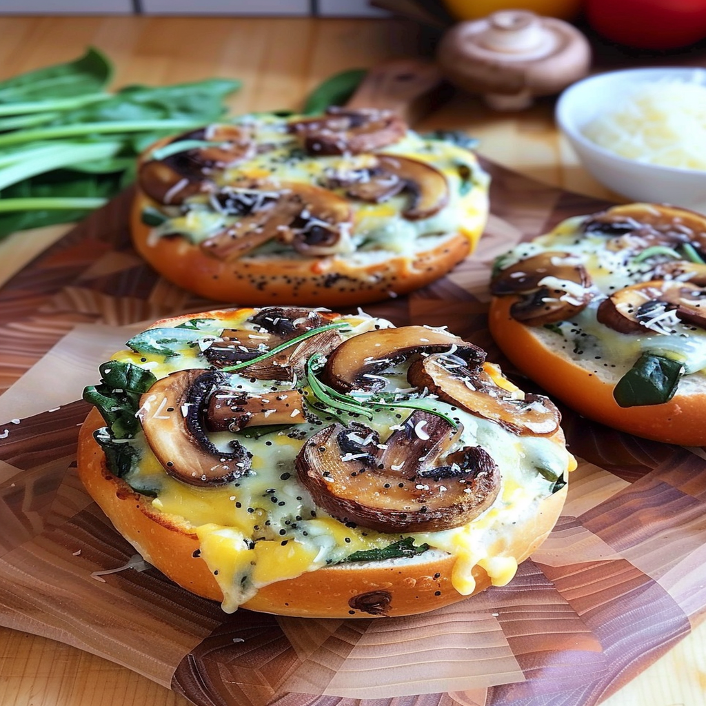 The aroma of freshly baked bagels wafts through the kitchen, mingling with earthy mushrooms and vibrant spinach to create a culinary masterpiece. Picture this: a