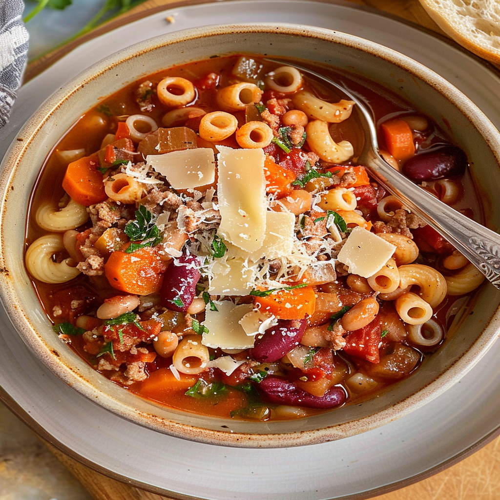 To prepare Olive Garden Pasta e Fagioli, you will need a variety of fresh ingredients. Key components include ground beef, diced tomatoes, kidney beans, and cannellini beans. Additionally, vegetable broth, pasta (such as ditalini), celery, carrots, and Italian seasoning enhance the flavor. Italian sandwich recipe A few cloves of garlic and onion add depth to the dish. Ensure you have salt and pepper on hand for seasoning. This combination creates a hearty and comforting meal that’s perfect for any occasion.