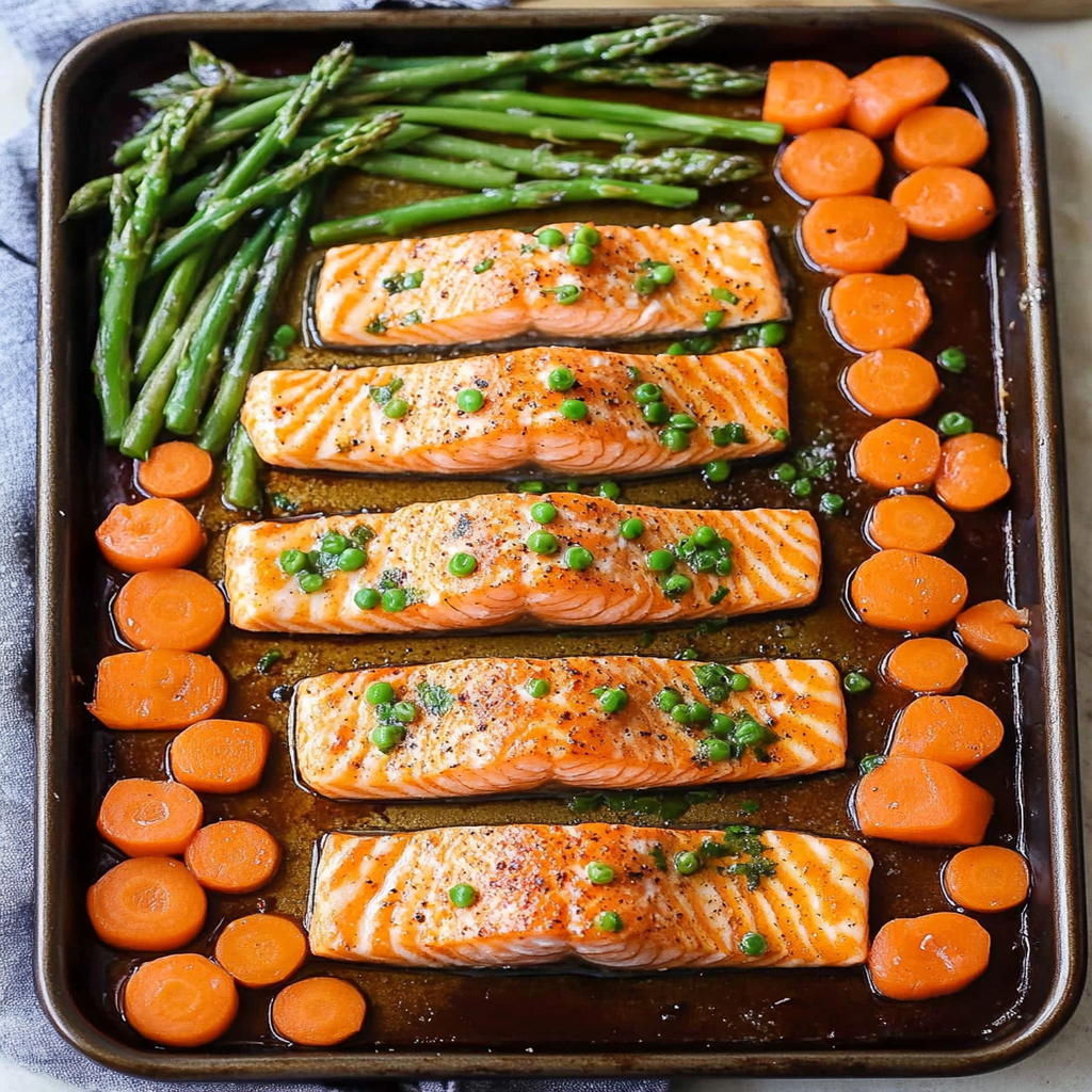 Start by preheating your oven to 400°F (200°C). While it warms up, season the salmon fillets and chop the veggies. Arrange everything on a sheet pan, pop it in the oven, and voila! Dinner is served in no time.