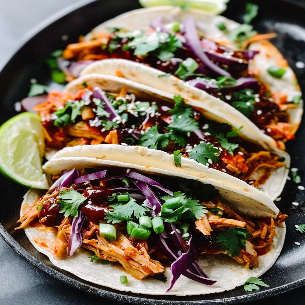 Korean BBQ Jackfruit Tacos are a mouthwatering fusion of sweet and savory flavors, perfect for your next taco night. Tender jackfruit soaked in rich Korean BBQ sauce is nestled in warm tortillas, topped with fresh veggies, cilantro, and a squeeze of lime for an explosion of taste. These delightful tacos cater to vegans and meat lovers alike, making them an exciting meal for gatherings or weeknight dinners.