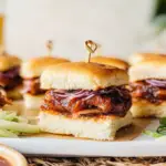 Once out of the oven, let them cool slightly before slicing into individual sliders. Transfer to plates and serve warm with extra barbecue sauce on the side for dipping.